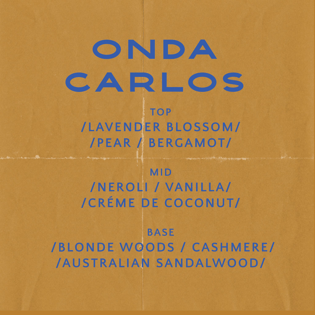 Grounded, warm, and quietly powerful. Onda Carlos is a familiar scent that lingers like a memory - never too soft, never too sharp. Creamy woods, subtly sweetness, and musky depth come together in a way that feels worn-in and intentional. It's the most masculine expression in the collection: confident, comforting and deeply personal.